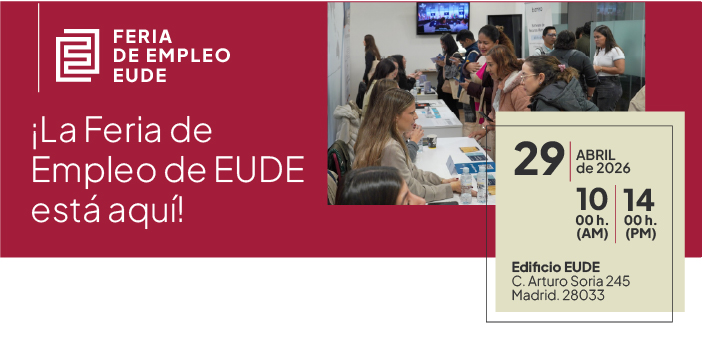 • Te esperamos el día 29 de abril de 2026, de 10:00 h a 14:00 h. en EUDE Business School. Calle Arturo Soria 245. Madrid 28033.