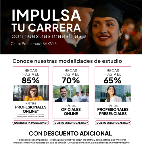 Nuestras Maestrías profesionales online, avaladas por EUDE Business School, con las que podrás obtener una BECA DE HASTA EL 75% más un más un descuento adicional de hasta 870€ en función a tu perfil y a las plazas con descuento disponible.
