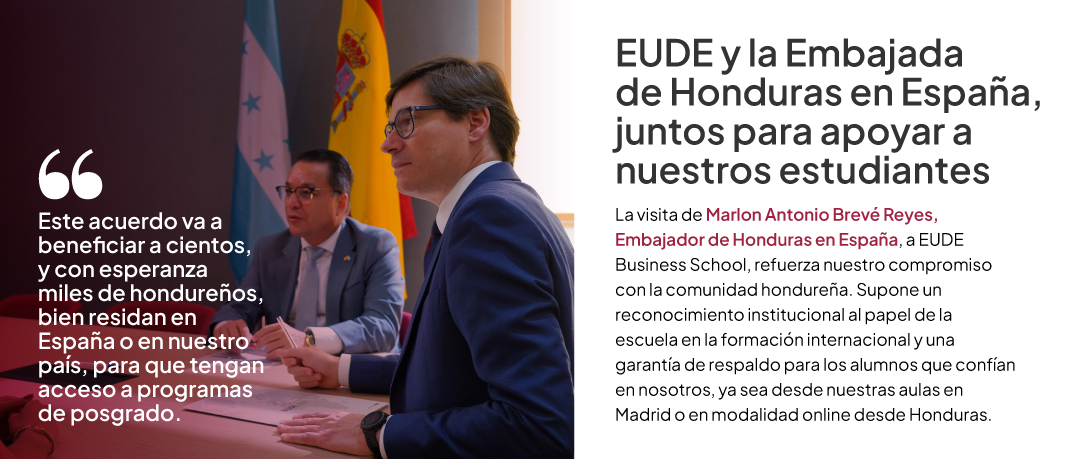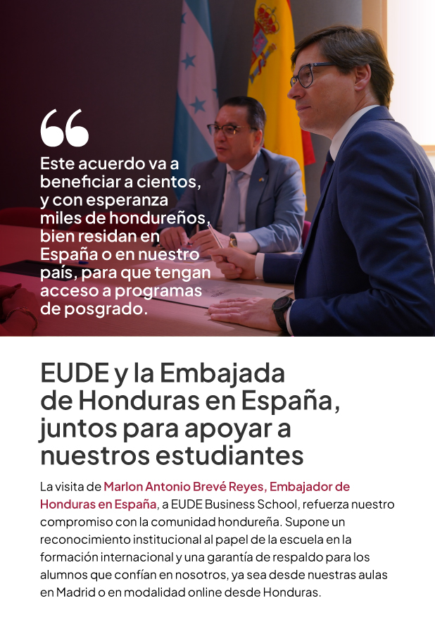 EUDE Business School con el deseo de promover sus relaciones amistosas y desarrollar proyectos de cooperación para el progreso y la difusión del aprendizaje y del conocimiento, lanza una convocatoria de becas gracias al convenio firmado con la Embajada de Honduras en España. Convocatoria dirigida a hondureños residentes en España y también en Honduras.
